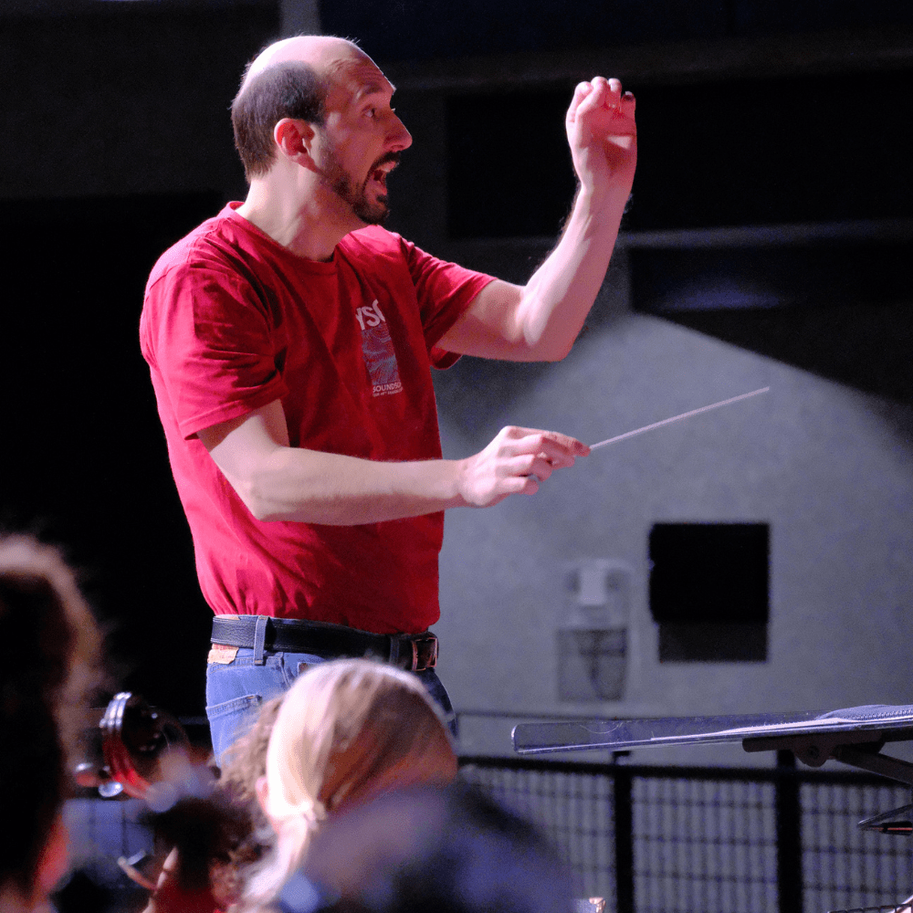 Schwaegler holds both bachelors and masters degrees in music education from the University of Illinois at Urbana-Champaign where he studied violin with Simin Ganatra (Pacifica Quartet), conducting with Donald Schleicher, and string pedagogy with Louis Bergonzi. His musical intuition is based on an expansive range of artistic experiences, from symphony orchestras and concert bands to bluegrass, jazz, rock, marching band, film, and liturgical music. This genre jumping allows him to combine a multitude of influences and observations, and the versatility of Schwaegler’s skills as an instrumentalist, educator, conductor, composer and arranger is on full display in his compositions, rehearsals, and performances.