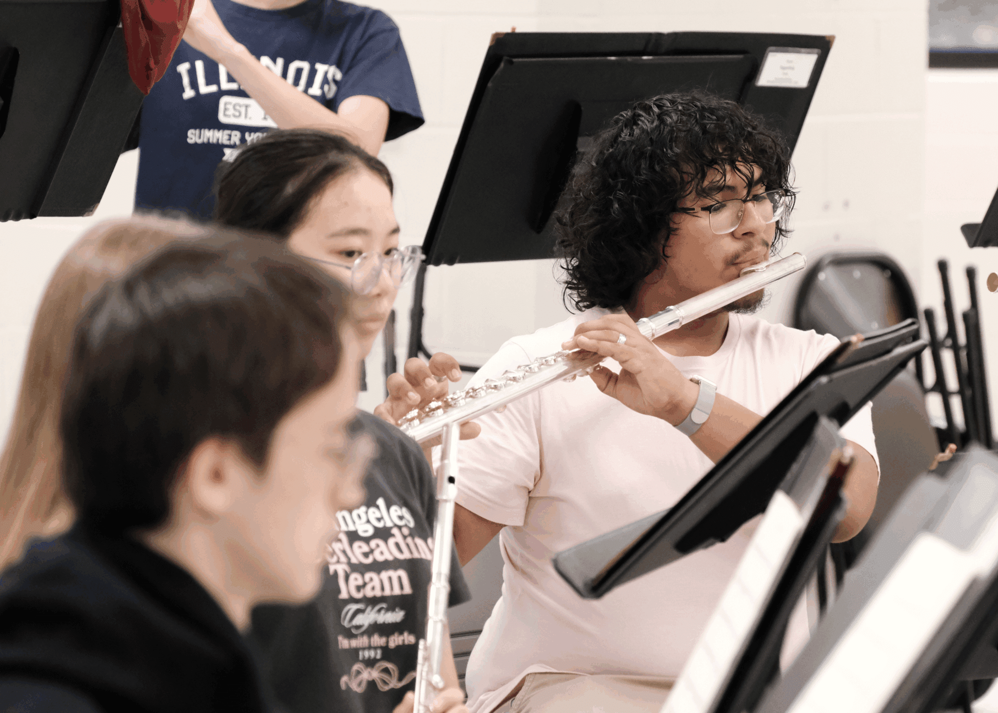 Flute choir rehearses most Sundays, September-May, from 5:35-6:35 pm at Elgin Community College. Students may miss up to two rehearsals per concert cycle, with special criteria for dress rehearsal absences, without impacting their eligibility to perform.